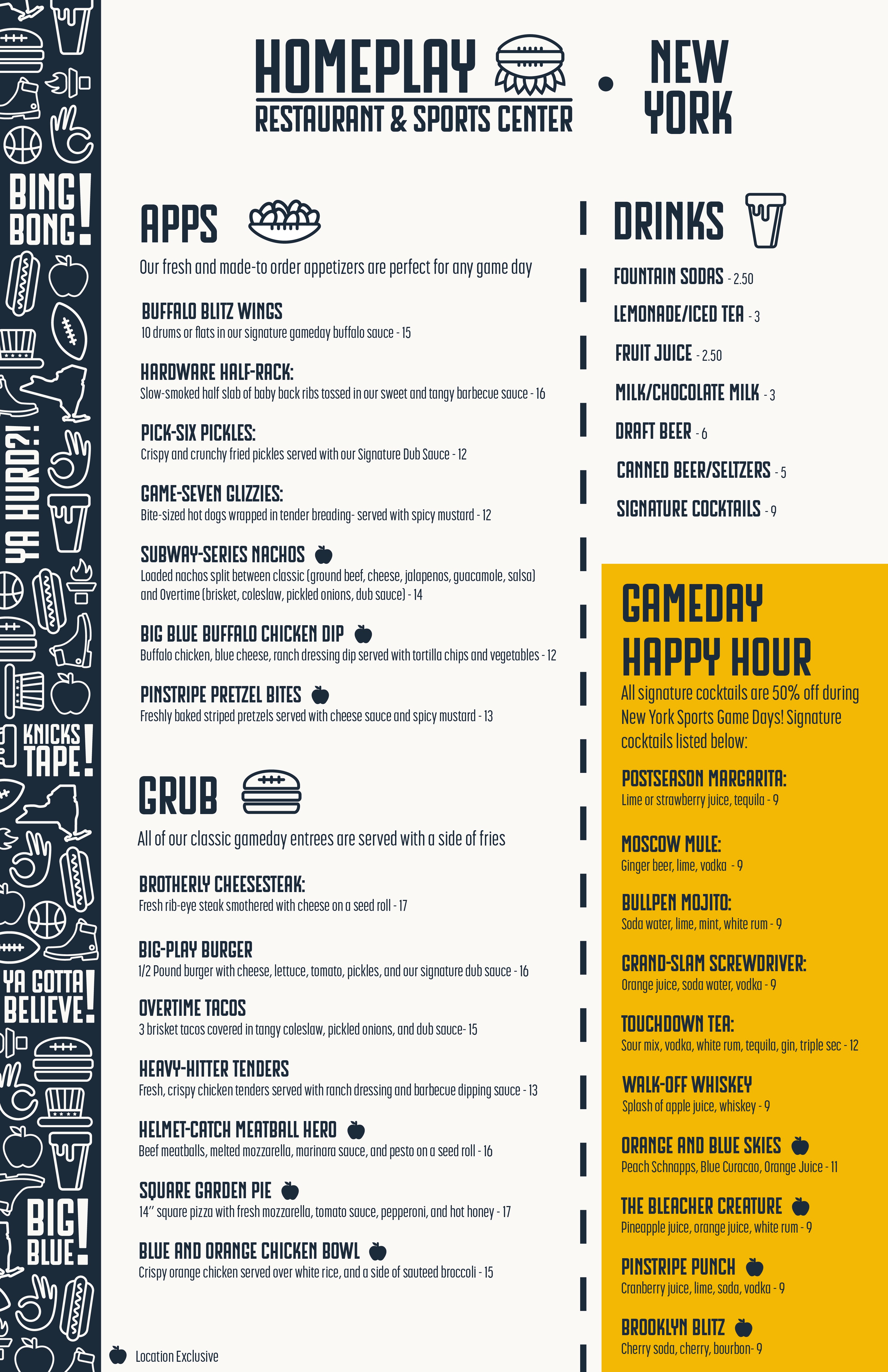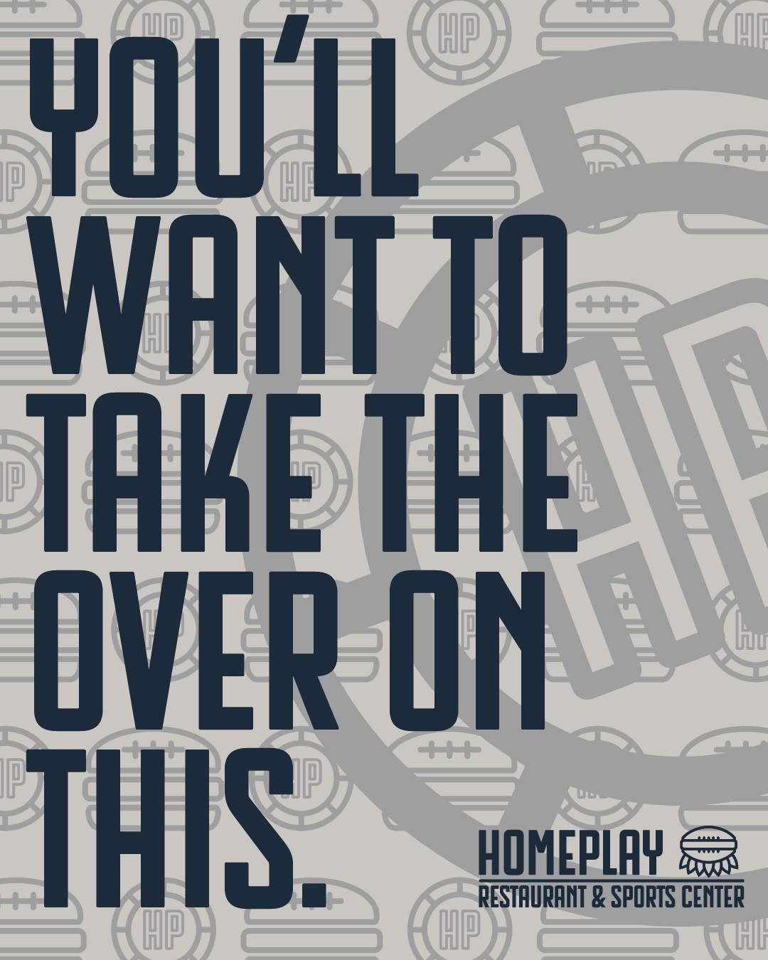 HomePlay is a conceptual sports bar and restaurant that’s main concept is that the theme is different based on location. The modern style and branding is meant to bring in sports fans from across the country, especially on gamedays. Inspired by the city that it’s in, each restaurant is built off of decades of sports culture and embodies the fans. Utilizing a strong relationship between typography and iconography, HomePlay creates a brand that caters and gives back to those that built the culture. The sleek colorway and witty branding create a welcoming environment that ignites hype, embraces culture, and puts the fans first.